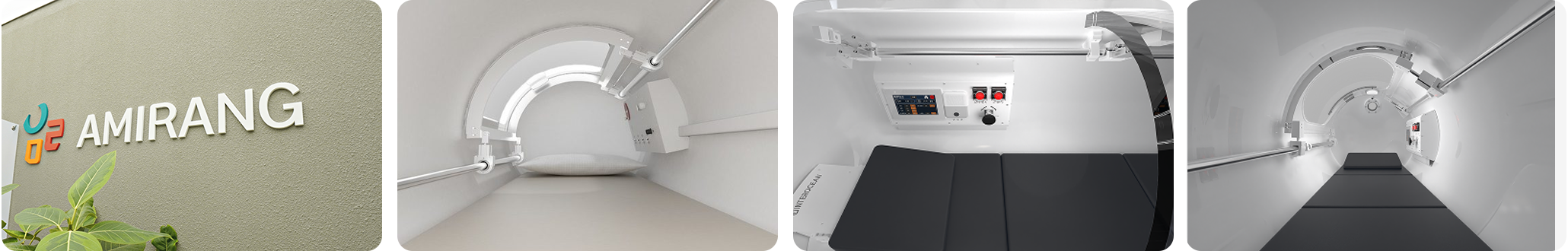 고압산소치료는 밀폐된 챔버(Chamber) 안에서 대기압의 2~3배에 해당하는 고압 환경을 조성하고, 100% 고농도의 순수 산소를 흡입하게 하는 치료법입니다.