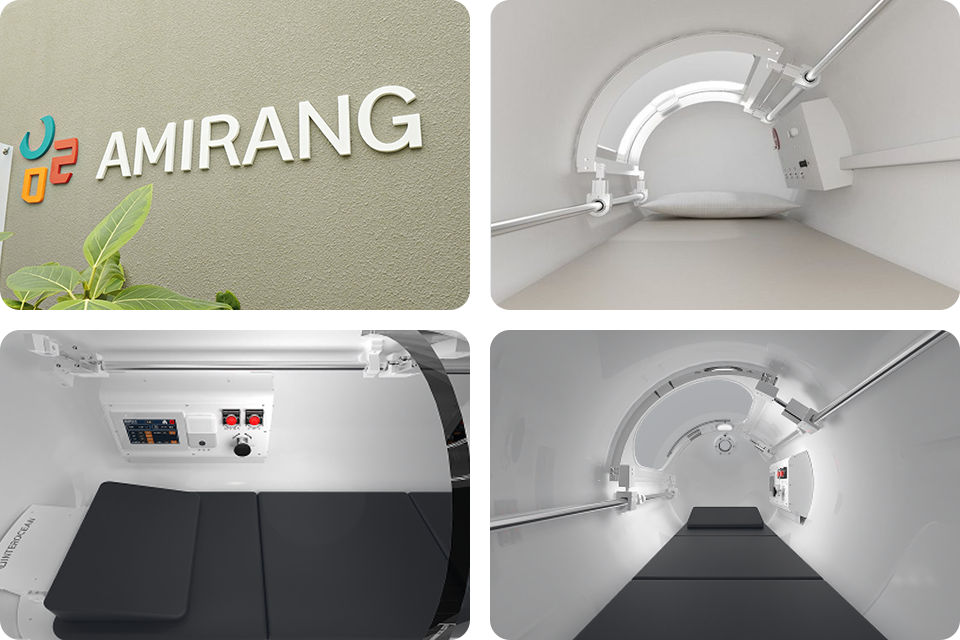 고압 환경에서 고농도 산소를 흡입하면 혈액 속 산소 농도가 높아져, 손상된 조직의 회복을 돕고 염증 완화, 면역력 강화에 효과를 줍니다.