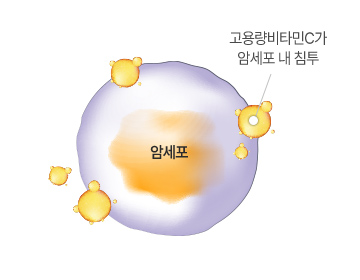 고용량으로 정맥 투여 시, 암세포 주변에서는 과산화수소가 생성되어 암세포를 공격하고,
